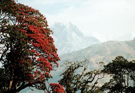 標高も2700mくらいにはいると、いよいよ国花ラリーグラス(しゃくなげ)の登場である。この時期(3月下旬)は特にきれいだ、ということを聞いていたが、なるほどなかなかである。何といっても大木なので見応えがあるし、結構密集して生えているのできれいである。