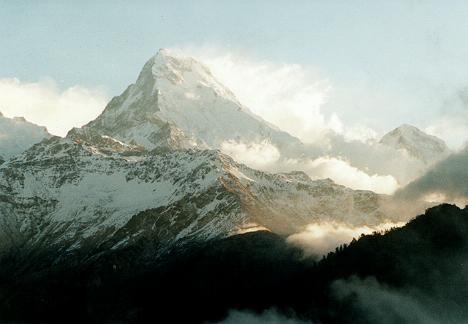 次の日の朝は早起きしてプーンヒルを目指しますが、どうも今一歩雲が多く、プーンヒルはガスの中。途中の展望台あたりで眺めているうちにアンナプルナサウスが綺麗に出てきました。とはいってもこの景色も長くは続かず、すぐにガスの中に。マチャプチャレに至っては、1分位しか見えない有様。