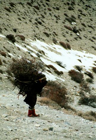 で、分岐でタバコ吸ってたら、薪集めのおじさんと出会った。村内はともかく、周辺には木が全くなかったからここらあたりまで上がって集めてるわけだけれど、このあたりの木もなくなったらどうするんだろうと人ごとながら気になる。これはこのあたりに限らないことで、もともと緑の山だったところが禿げ山になってしまっている例は数え上げたらきりがない。かといってガスを導入したとしても、そのためには現金がいる。その現金はどうやって稼げばいいのか?裏を返せば、トレッカーはお金を村に落とすが、その一方で村周辺の樹木伐採を加速させているのだ。気持ちは複雑である。