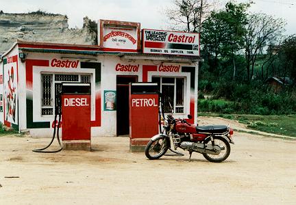 なお、気になったのが、目につくガソリンスタンドの少なさです。カトマンズの街中でさえ、あまり目に入らなかったような気がします。「タンク残量が半分になったあたりでスタンドを見つけたら、躊躇なく給油しておくのが正解だと思います(往復ルートの場合はその限りではない。この写真はバクタプルへ向かう国道沿いにあったスタンドで、見た中では一番わかりやすいスタンドでした)。