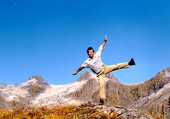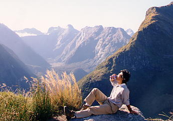 ま、まあそんなわけで今日もまた一日快晴で終わったぞ。カメラは…まだなんとかなっている。峠では3回に1回しかうまくいかなかったりしたけれど、まあ証拠写真だけは撮れた(もっともこのころになると、「バッテリー火あぶり刺激策」なんて強硬手段にもでたりしてたけど)。夜は明るい月が恨めしい。星が見えないじゃないのさ!もっとももうさんざん見たといえば見たんだけれど。さ、このあとはいよいよ「おしんこどんSutherland Falls(サザーランド滝)580mに挑む!」の巻でございます。え、Takemaはって?さぁ、どうしたんでしょうかねえ。「もう一度行って来い!」なんて言わないでね(笑)。