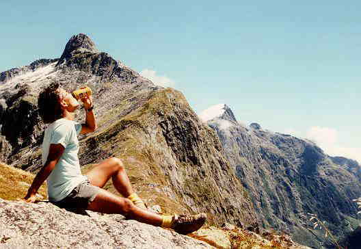 さて、Clintonの小屋を出発する頃には人々もかなり起き出してきた(ベッドのこともあるが、どうも山というと「早起き早立ち」という日本の夏山の習慣が出てしまうのだ。こっちの人、いや、白人系のトランパーは概して出発が遅い)。昨日二言三言言葉を交わした人たちに予備バッテリー持っているかどうかを聞こうと思ったが、「もしかしたらガイドツアー小屋のポンポロナにあるんじゃないか?」との淡い期待を信じて出発とする。