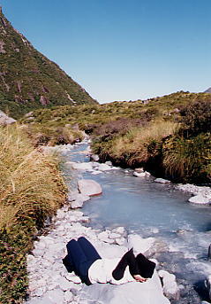 ところで、1989当時は結構気軽に(とは行ってもまるまる一日行程ですが)行くことのできたHooker Hut、どうやら浸食と崩落の危惧が当たったようで、現在は氷河湖より先のルートがエキスパート向けになってしまったようです。「必ずヘルメットを着用し…」というようなことが書いてありましたし、DOCオフィスにあった山小屋の予約状況を見てもガラガラだったなあ(ミューラーは連日満員だったのに)。これまた時も土砂も流れたわけだ。