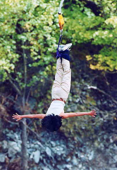 てなわけで、TakemaとNZに行って、しないわけがないのがバンジージャンプ。てなわけで、行って来ました毎度おなじみのRiver Kawarau。Takema自身は、1989、1999×2、そして今回で4回目の場所だけあって、「さって今回も飛ぶかなっ♪」といった感じの余裕をかましていた部分もあったのですが、おしんこどんはいよいよ初舞台。最初は「せっかくのしんこ'n旅行ということもあるし、ここは一発、自分もやったことのないタンデムバンジーでいきまひょか?」などとほざいていたTakemaではあったが、結局はそれぞれ別に飛ぶことにした(彼女は初めてだしね)。今度猿ヶ京行ったらタンデムで飛ばせてくださいね、二葉さん(読んでるかなぁ)。