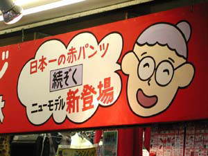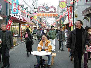 中高年向きの洋品店が何軒か軒を連ねていた。「はぁ〜い、新入荷の毛糸のパンツはいかがですかぁ!」の呼び声が耳に入る。「手作り綿入りはんてん2900円」が軒先にぶら下がっている。原価はいくらなんだろうと妙に気にかかる。