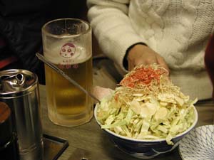 とりあえず席が空いていた店に入り、ニンニクもんじゃ他2品を注文。このたびは拙HPとリンクさせていただいているきょうみさん、そして彼女のお友達のみやのさんとの会食というかオフ会ということで柄にもなく(最初だけ)キンチョー蚊取りになっていたTakemaであったが、なぁーにどうせすぐ慣れるのさ。「お飲物」さえ飲んじゃえばね(いつものパターン)。