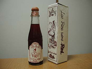 この前ラオスに行って来たときに、現地の地酒造りの村で焼酎を買ってきた。その名を「ラオラーオ」。米から作る蒸留酒で、どんな米から作るのかによって色や味が異なっている。上の写真の酒は赤米から作ったので色が赤いというわけだ(実際は写真よりももう少し薄い色です)。