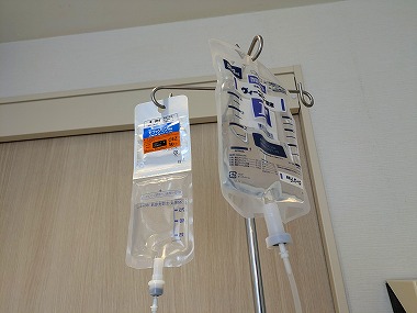 手術当日はまだ起き上がれませんでしたし水分も「寝たまま飲める」器具を付けながらの摂取でしたが(ちなみに手術前に下剤で大は排出完了済み、小は尿道カテーテルにて勝手に排尿していました)、翌日の朝、状況を確認後は立ち上がる許可が出て、カテーテルも外されました。 |