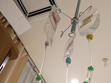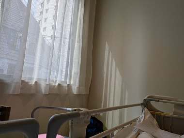 病室に戻りましたが、まだ起き上がりの許可が出ておらず(というかいろいろと管が突いているので物理的にも無理)、そうなるとこんな画像しか撮れないわけです。 |
