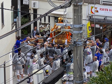 多くの御輿があちこちの道路を廻っているようでしたが、病室から見えるこの道を通っていったのは左上画像の1台だけでした。こちらは外にも出られないので感謝です。夕ご飯の豚肉焼き、しっかり味が染みていて病院食とは思えないほど(右下の酢の物はかなり薄味でしたが)。 |