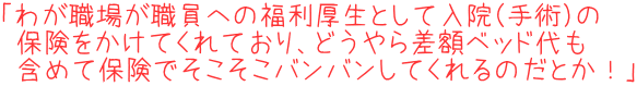 個室料金は当然お高いのですが(+15,000円/日)、お金に糸目を付けなかった理由はここにあります。それは‥ |
