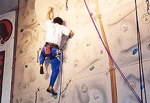 上の写真は、ふだんトップロープばかりで登っていた(=ダメもとでいろんなトライができる)のに突如としてリード(ロープをその都度支点にかませていくので、状況によってはガツンと落ちる)でいくことになったので、結構おっかなびっくりで登っている様子を写したもの。確か10aレベルのルートを登っていたと思うけれど、ホントは当時はもう少し華麗に登っていた‥はず(笑)。懐かしい写真です、ハイ。