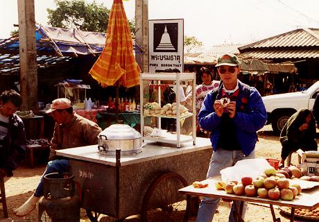 ちなみにこの村、今はリゾート化しつつあるようで、確かにそれらしきホテル(とはいっても外国人用とはあまり思えない)がいくつかある。たしかに村の標高は1000mを越えており、昼間でも吹く風は涼しい。でも、村の中央の屋台群や青空市場は数年前のままであった。そういえばこの屋台群の中に、滋養強壮用の酒だろうが、長さ30cmはあるだろうムカデというか、ムカデを10倍くらい太くしたようなげに恐ろしげな虫を入れたものがあった。飲んだことのある人は是非ご一報を頂きたいと思います。我々二人は「うげげっ!」というばかりで手も足も出ませんでした。