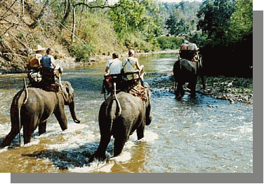あと、このような山越えの道の後に川の中を行くような場合、特にそれが3-5月の場合は、「象だって暑いゾウッ!」ということで、鼻で吸った水を背中、つまり乗客向けてブシャァっとやってくれる場合があります。もちろんその水分のほとんどは今吸い上げたばかりの川の水なのですが、少しは鼻の中の粘液とかが混じっているかと思うとあまりいい気はしません(^_^;)。そんな場合は、休憩の時などに身体を洗ってしまいましょう…。そんな体験したくないぞという方は、こういうトレッキングに参加しない方がいいかも。