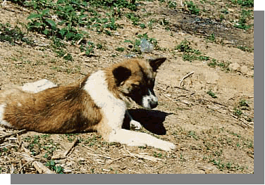 アカ族の村で見た犬。各民族の中でもアカ族だけは犬を食べると聞いていたので、「ほほーぅ、おまえもいつか食べられてしまうのだな」という目で見ていたのだが、あにはからんや、彼らは自分たちがペットとして飼っている犬は決して食べないらしい。さもありなん。他の村や平地の町から買ってきた犬が「お肉」となるらしい。そうかそうか、おまえは安泰なのだね。
