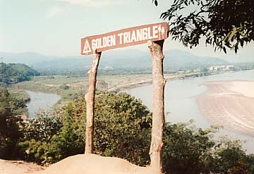 そんでもって翌日はいよいよGT(Golden Triangle)へ。とにかく国道一号線を北へ北へ北へ。とはいっても62kmですから大した距離じゃありません(ちなみにMae Chen:メチェンまでは28kmです)。ミャンマー方面からの物資を積んだトラックが多いので要注意。風圧もスゴイし、埃が目にはいるときついですから、少なくともゴーグルはあったほうがいいでしょう。Mae Saiに近づくにつれて国道上に検問用のゲートがいくつか出てきますが、普通バイクが止められることはありません。止められたら?の時のために、念のためパスポートのコピーを持っていた方がいいでしょう(この旅行に限ったことではないですが)。また、Takemaは基本的にいつでも国際免許証を持参しています。タイでバイクを借りるのには全く不要ですが、一応「日本という国が公的に発行した国際的な書類」であるだけに、何かの役に立つのではないかと思っているわけで、ま、安心料といったところでしょうか。
