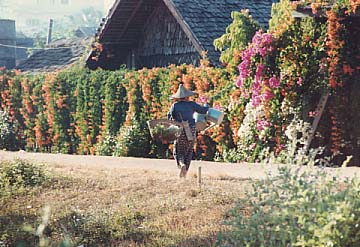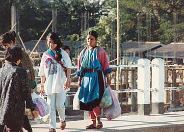 右はカラフルな民族衣装でおなじみの?リス族の女性。ミャンマーに買い出しに行って来たのでしょう。