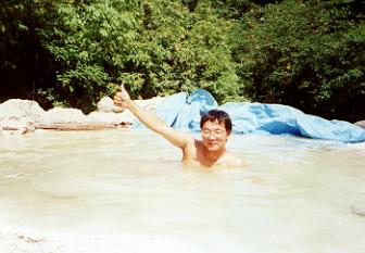 近年ツーリング雑誌の定番となってしまった「東北のカムイワッカ」。滝そのものが温泉です。駐車場から10分ほど山道を降りたところにあります。脱衣場があるので(使ったことないけど)女性でも安心(でも水着着られると何だかこっちのほうがどぎまぎしてしまうのはなぜ?)ここで気を付けたいのは、雨のあとなどは川そのものの温度が低下してしまうのでぬるい(寒くて入れない)事もあるということ。そんなときは、駐車場付近の河原に自分で湯船を作って入りましょう。あちこちでお湯が沸き出しているので、人の目さえ気にしなければなかなか風情があっていいものです。時間的には17:00を過ぎるとぐんと人が少なくなるような気がします。さて、ここまで来たなら是非やって欲しいことが2つ。