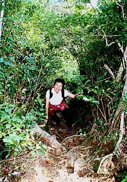 目指す頂上はまだはるかに先。しかも展望台の場所から一気に下り、そして一気に登りかえさなければならない。かなりショックであったのだ。しかもすでに登りだして2時間半がたっている。今日は2人だし、そんなに遅いペースじゃなかったはずなのに。う〜む、この続きは次のページで。