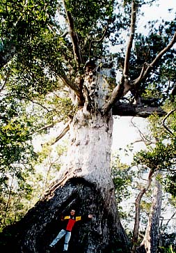 キツーい登りを黙々とこなしていくと万代杉へ。根元を登山道が通っています。
